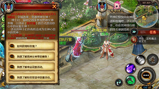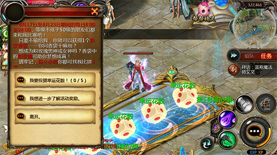 记得提取活动邮件中的男神女神邀请函,使用它即可导航到男神女神季特使·依米或幸运花骰处那里,你也可以通过它及时查询男神&女神排行榜,获得你想要知道的信息。