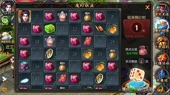 2015年8月17日至8月31日期间,冒险者们每天可在棋盘签到处抽奖领取各类丰厚礼品。
