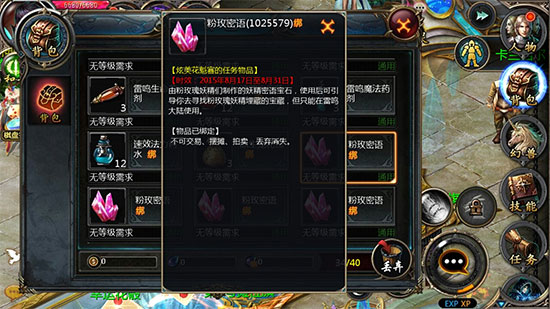 ③ 冒险者使用粉玫密语[绑]寻宝,将有机会获得粉玫瑰、升级经验、金币和灵魂晶石[绑]等宝物。